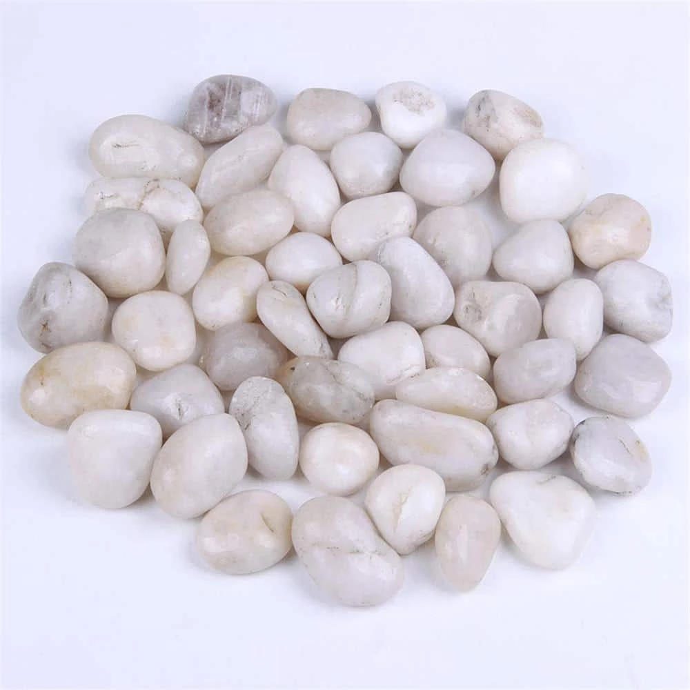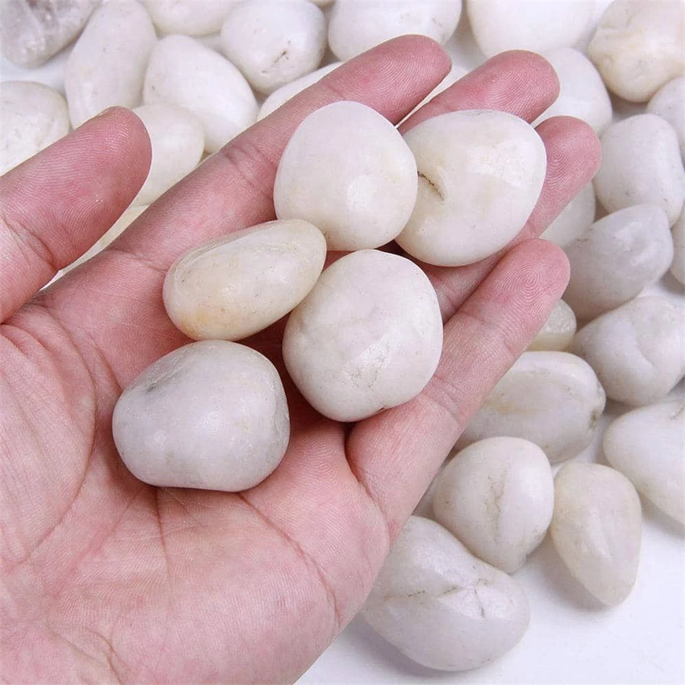 Characterized by raw, natural shapes, these rocks are best applicable when designing succulent gardens, bonsai tree gardens or zenned out flower arrangements. Use the pebbles to fill containers, pitchers, flower vases, dishes and more for decorating the home or a place of business. Cultivate a calming environment by displaying plants topped with our polished white pebbles for plants. Scatter the rocks on an altar or spread them on your mantle if desired.