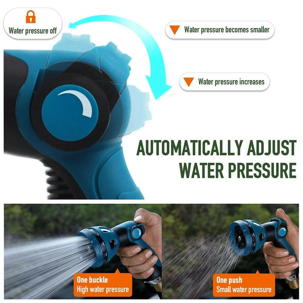 - Easily to use this hose spray nozzle by pushing open the all-in-one thumb controller, no squeeze, just one finger to adjust water flow freely from low to high, delicate to high pressure without efforts, quite simple operation suitable for elder parents and children too