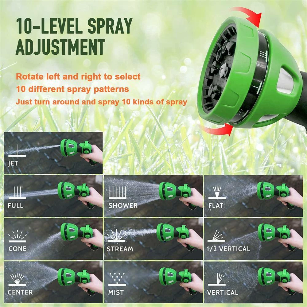 The hose nozzle has 10 different spray patterns to meet your every watering need. Shower, Vertical, Stream, Center, Cone, Full, Jet, Mist, Flat,1/2 Vertical.360° rotation operation, adjust the spray pattern by aligning with arrow marks, whether you choose high pressure “Jet” for cleaning, washing cars, or gentle “shower” for watering garden & lawns, bathing pets, all up to you! Our hose nozzle is perfect for your garden.