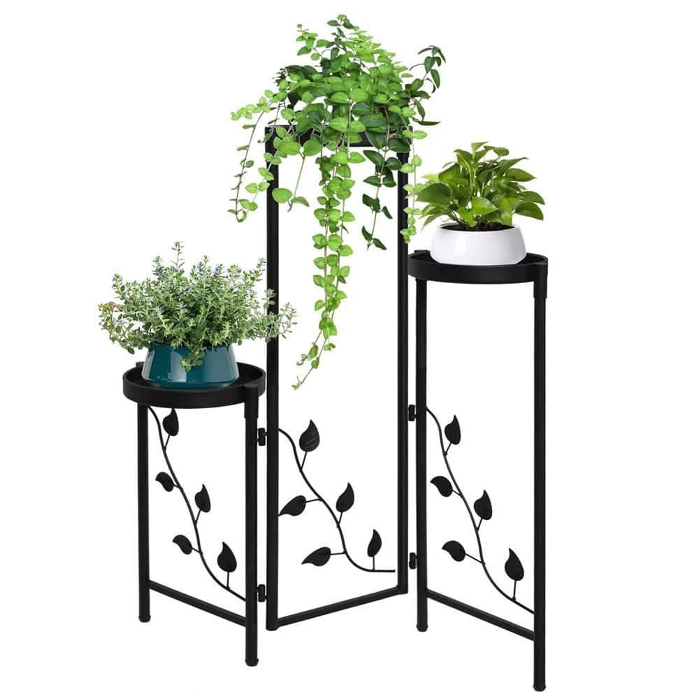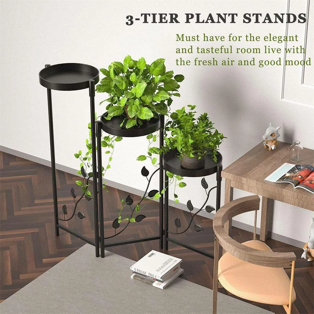 This 3-tier metal flower stand gentle curve Leaves design makes the flower stand more beautiful plant stand is a great accent decor for any room,it will be very gorgeous when used with your plant pots. Beautifully display plants flowers and garden decorations on a Metal flower pot organizer, which can be used as a good decoration for balcony, garden, florist, outdoor, indoor, living room, office, patio plants, flower pot decoration or display etc. Design Structure with Geometric Mechanics and Artistic Aesthetics, Brings Reliable Stability and Super Load-Bearing.Tiered plant stand rack have a total Load-bearing of up to 80 lbs(each tier 25-30lbs).