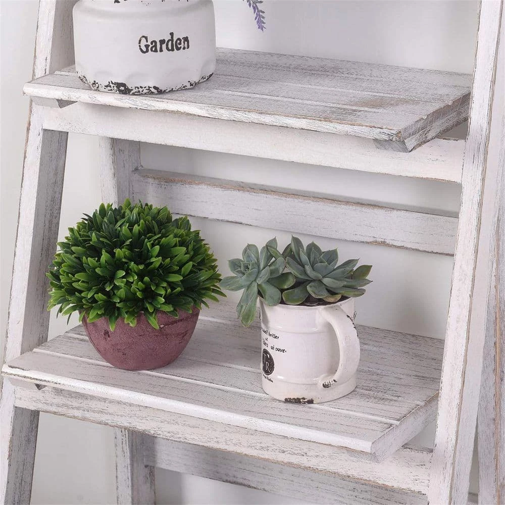 This lightweight folding design ladder plant shelf is easy to move and store. Vintage A-Frame construction make it stand stable and sturdy.Multi-Tiered Plant Stand helps display and organize your handicrafts, ornament, memorabilia, showpieces, decorative itemsand other prized possession. Three slatted shelves borders provide perfect platforms for small plants.