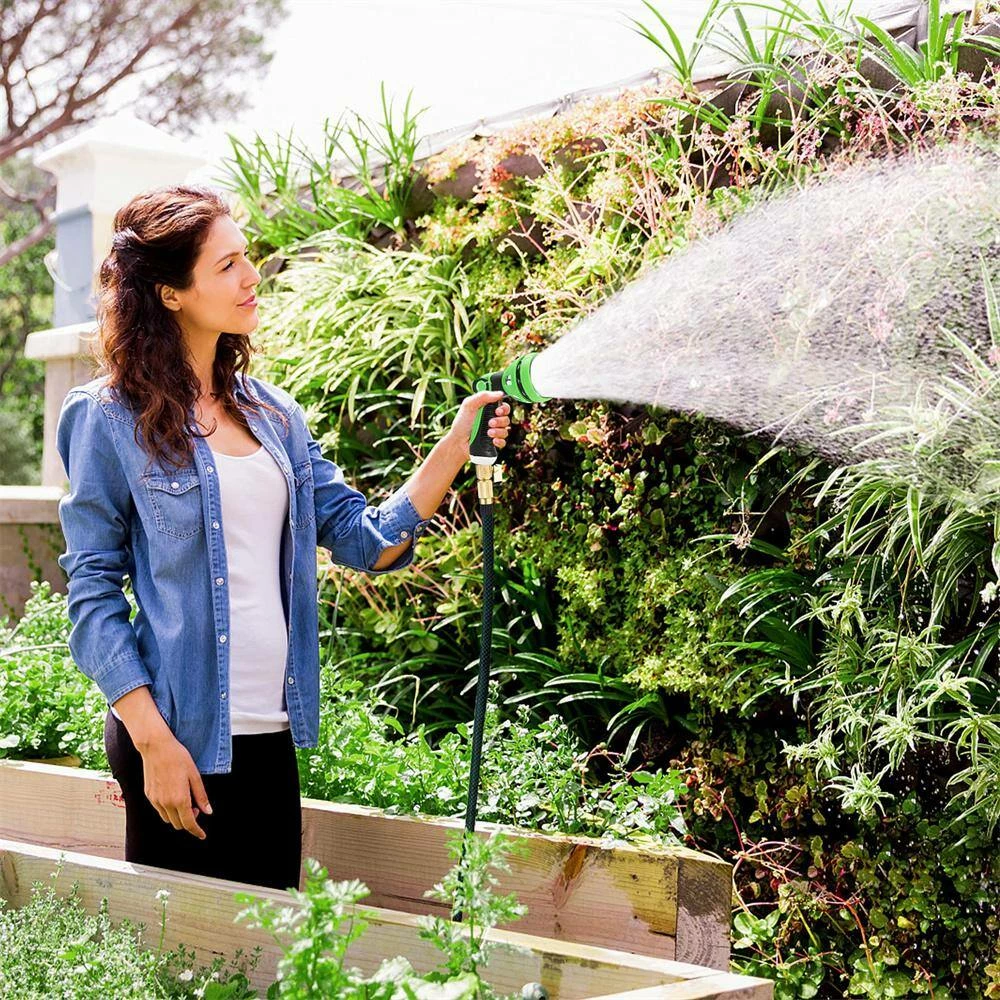 - Spray nozzle comes with 10 spray patterns, just rotate the sprayer head to select patterns including JET, CENTER, SHOWER, FULL, FLAT, 1/2 VERTICAL, MIST, VERTICAL, STREAM, CONE, this can cover all your needs such as watering lawns & gardens, washing cars, showering pets, cleaning dirty floors, etc.