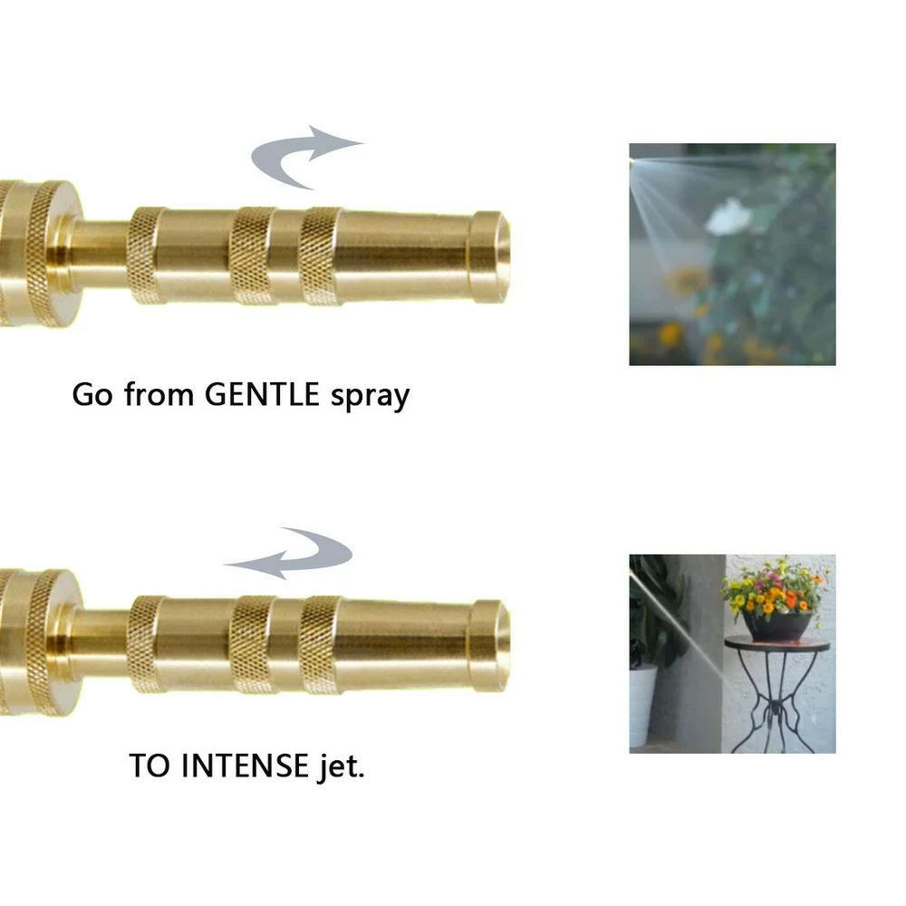 These brass adjustable twist hose nozzles fit for your standard garden hose male end. Very powerful jet sprayer for your garden. This is typically the same for 1/2 in., 5/8 in., and 3/4 in. hoses..Great for garden watering, car washing, cleaning driveway, deck, gutters and more.