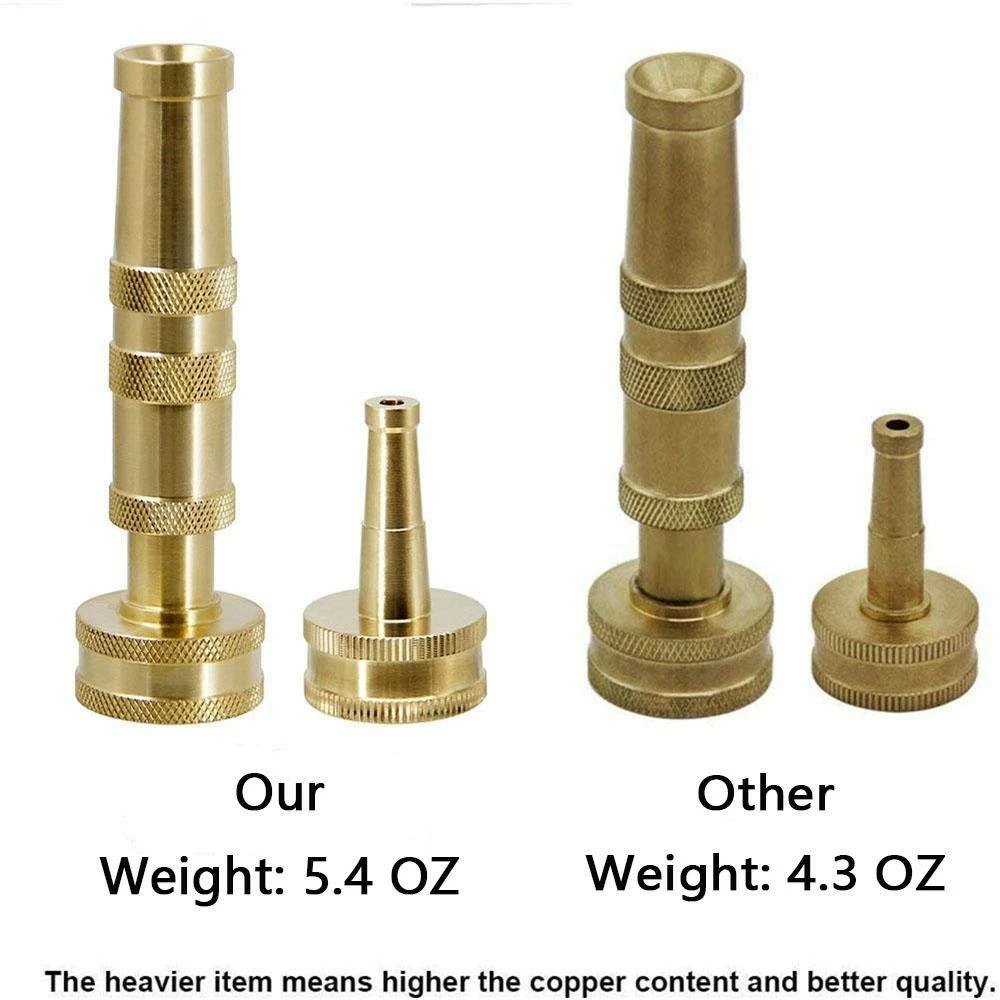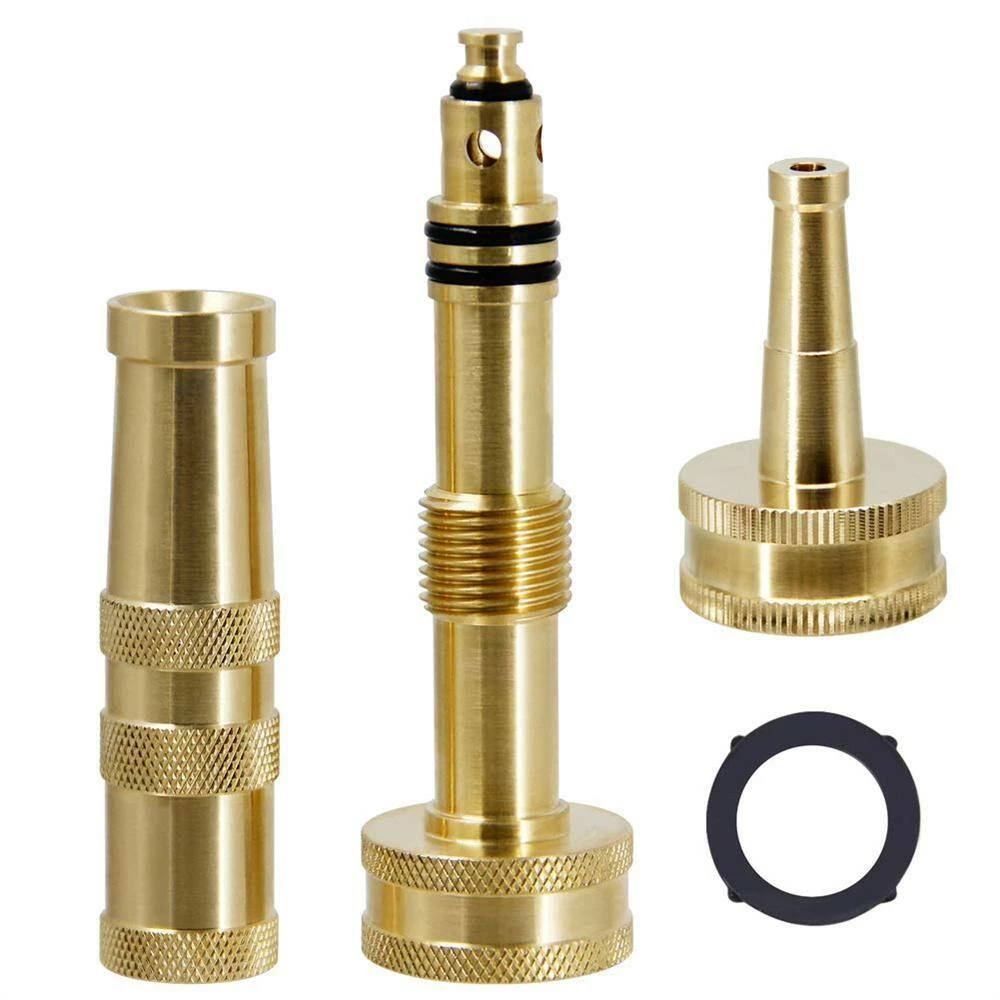 This nozzle fits standard garden hose, great for watering gardens, car washing, deck, siding & driveway cleaning and more.Solid brass integral inner core, anti – damage, anti – rust, anti – leakage, durable. Perfect for watering lawn, gardening.