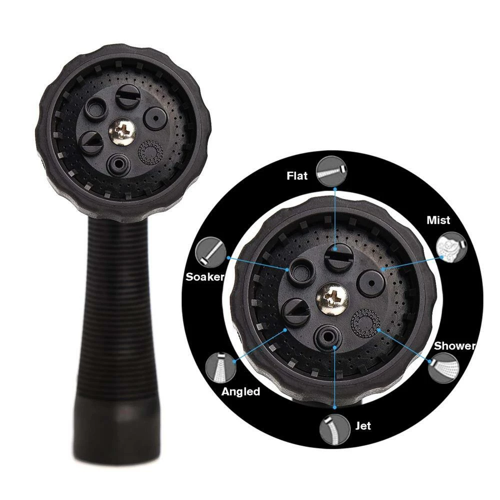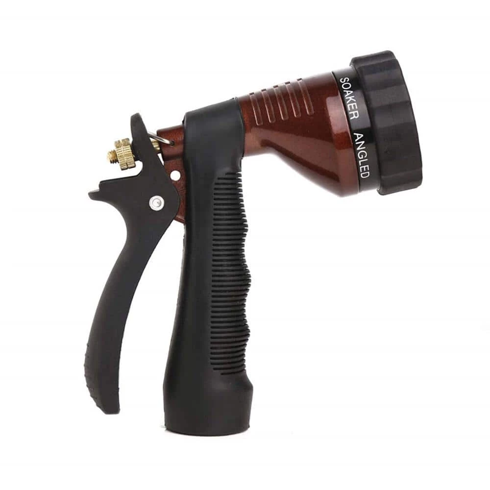 - Water hose nozzle features a nice integrated trigger lock bar at the top of the handle that keep Water flowing without applying any pressure, the black shock-resistant rubber dial protects the hand sprayer from accidental impacts, the pistol grip handle with TPR rubber is slip-resistant and comfortable to hold