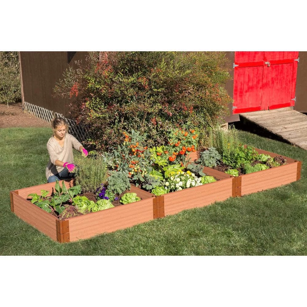 A solid choice for durability and function. This raised garden bed is strong, long and perfectly square. Reinforced with bracing boards to prevent frost push-out or any disturbance from mowers or rambunctious children and pets. If you like an organized garden, you’ll appreciate how the bracing boards divide your garden into three separate planting areas. The 11 in. high stacked side boards give you lots of depth to grow both underground veggies, as well as tall plants. As shown, your 4′ x 12′ x 11 in. raised garden bed provides 48 sq. ft. of planting area. Screw-on joints make it simple to install. Your kit comes with everything you need except the soil and plants. Each modular kit includes eighteen of our 1 in. Classic Sienna composite boards, fourteen 1 in. screw-on stacking brackets and two 1 in. screw-on 4-Way bracing brackets. The insulating open-channel boards trap air, providing insulation to your soil. Keeps soil warmer in the Spring and Fall, and cooler in the Summer, so you can grow for an extended period. Stacking brackets allow you to install the second layer of your garden just by inserting the stakes into the brackets below. Brackets pivot 270°, allowing endless design options. You can easily convert your bed to an octagon, just by changing the angle of the brackets.