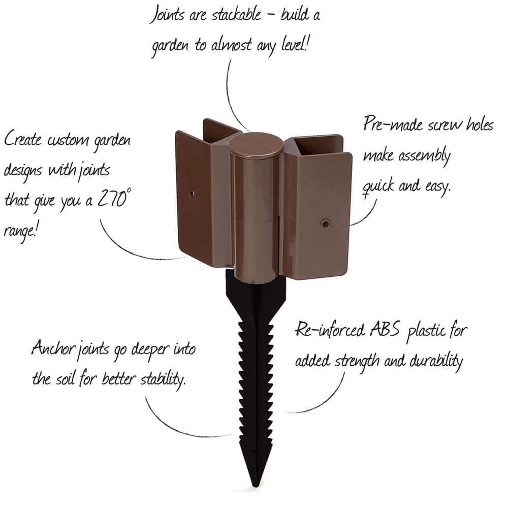 Play up your curves. These tool-free modular kits will inspire endless ideas on how to freshen up your landscape and improve your curb appeal. Create landscape edging, playground borders, or unique features that can be both soft and organic, or cute and fun depending on your design. Create simple scalloped borders, or undulating paths that are built to last. Your kit comes with everything you need to cover 16 lin. ft. You get four of our revolutionary 1 in. Classic Sienna composite curved boards, and four 1 in. snap-lock anchor brackets. Brackets simply slide and snap to lock securely to the board. The insulating open-channel boards trap air, providing insulation to your soil. Keeps soil warmer in the Spring and Fall, and cooler in the Summer, so you can grow for an extended period. Anchor brackets grip the ground tight, so your edging will stay put no matter the weather. The serrated stakes will also help to keep your borders from being disturbed by mowers or any human activity. Our Raised Garden Bed Anchor Brackets pivot 270°, allowing endless design options. Live near the shore? Use multiple kits to create a wavy border planted with blue and white lobelia to replicate the tide. Curved and straight border kits can be combined to create lozenge shapes, or pie-shaped wedges that can be arranged in many unique ways.