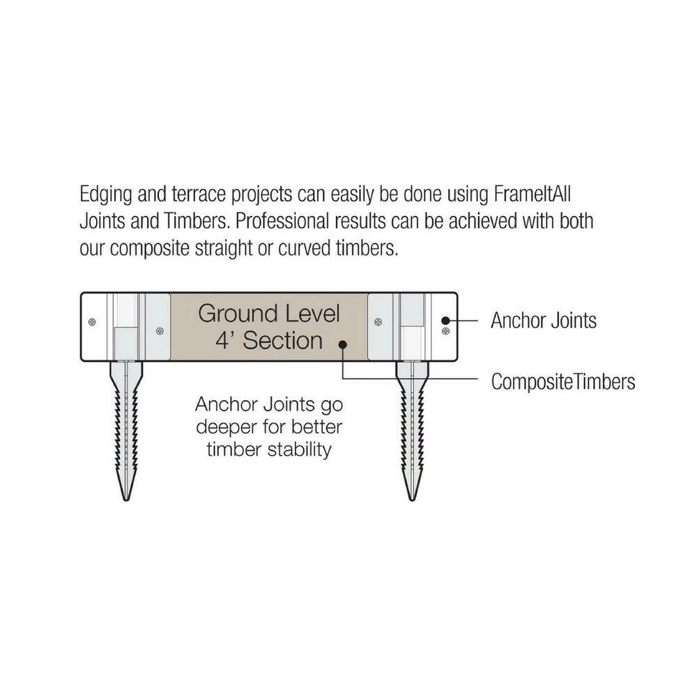 Frame It All playground borders were created by a landscape designer to be an easy, secure and cost-effective way to contain wood and rubber safety surfacing under your child’s play area. We’ve designed our curved borders to flow naturally and to gracefully tie into your existing landscape. Unlike heavy wood ties that splinter (and are labor intensive), Frame It All boards and screw-on brackets go together with ease. Our borders are made from sustainably sourced wood fibers and food-grade HDPE recycled plastic, so your children are safe from splinters and hazardous chemicals. Each kit contains four Classic Sienna curved 1 in. profile boards and screw-on anchor brackets totaling 16 lin. ft. screw-on brackets – simply slide and snap in place. Straight kits are also available and can be used interchangeably with curved kits to create natural borders that integrate with your landscape. Helpful hint. When calculating the dimensions of your playground border, a good rule of thumb is to allow 2X the height of your swing set in front and behind the swing, and 6 ft. on either side of the swing set. For example, if your swing set is 7 ft. high, you would want 14 ft. of safety surface in front of and behind the swing, for a total depth of 28 ft.