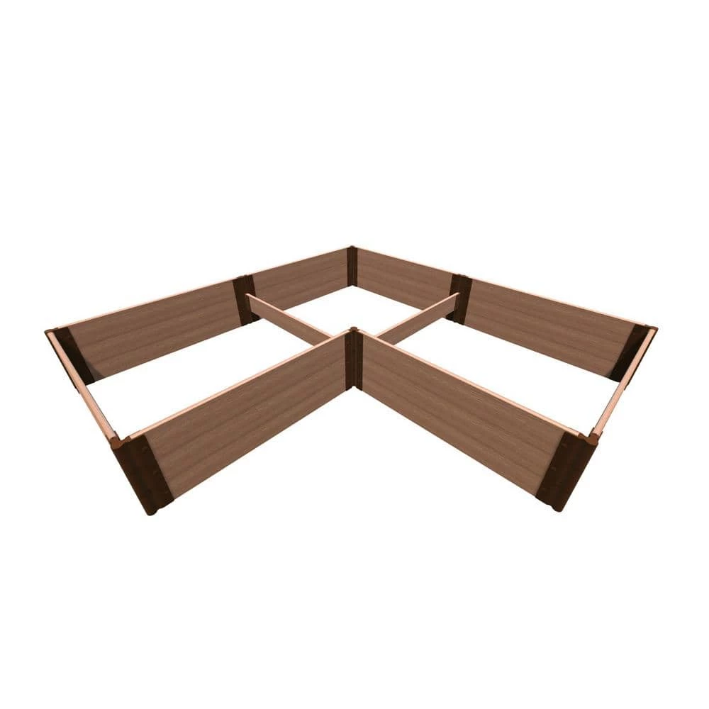 ARROWHEAD 8 ft. x 8 ft. CORNER RAISED GARDEN BEDS are a triumph of form and functionality with 48 sq. ft. of growing area for flowers, herbs, veggies, fruits, heathers or lavender. Stunning as a flower garden and incredibly functional as a veggie garden you can plant annuals and perennials with vegetables. These raised beds feature dynamic angles and offer depth to plant potatoes or other root vegetables. Cherry tomatoes and ornamental peppers work well with flowers to encourage pollinating insects. Rhubarb, has lovely cream-colored flower stalks that fit in nicely with many plants. Once asparagus has faded, their feathery foliage adds special interest in a flower border. Veggies including artichoke, arugula, asparagus, lettuce, pole beans, beets, carrots and cabbage will all thrive in this raised garden bed, together with luscious tomatoes, fragrant herbs and flowers. For easier harvesting, leave sufficient space on all sides making it super-easy to run out and pick veggies for a salad. Tool-free snap-lock joints make it simple to install. Your kit comes with everything you need other than soil and plants. Each modular kit includes food safe, straight composite boards and snap-lock stacking brackets. The insulating open-channel boards trap air, providing insulation to your soil, keeping soil warmer in the spring and fall and cooler in the summer to extend the growing period.