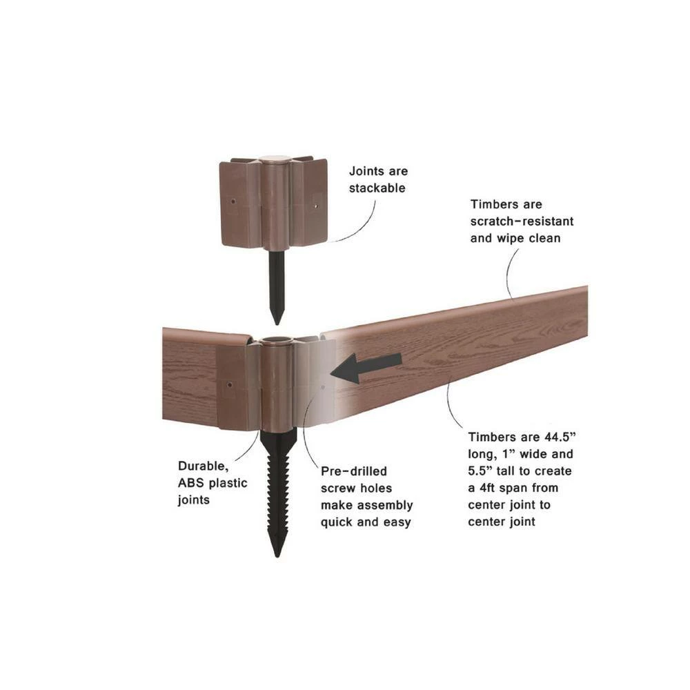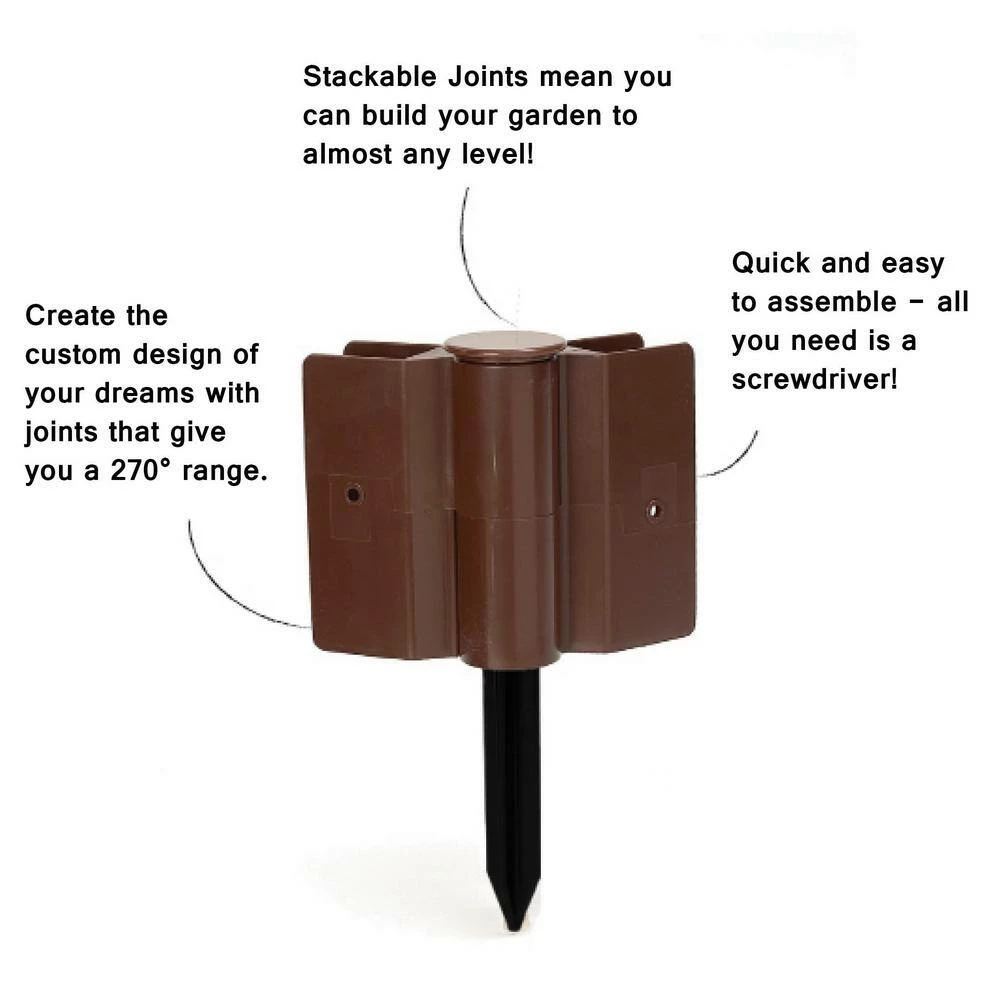 This raised garden bed is strong, long and perfectly square. A solid choice for durability and function. Reinforced with bracing boards to prevent frost push-out. If you like an organized garden, you’ll appreciate how the bracing boards divide your garden into four separate planting areas. The 11-inch-high stacked side boards give you lots of depth to grow both underground veggies like onions, garlic and carrots, as well as tall plants like tomatoes, corn or sunflowers. As shown, your 4′ x 12′ x 11″ raised garden bed provides 64 square feet of planting area. You can redesign your garden at any time by assembling your available boards and brackets in new ways. Separate your stacked two-level garden bed into two separate 5.5″ high raised beds. Create five 4′ x 4′ x 5.5″ raised beds, or three 4′ x 8′ x 5.5 beds…or terraced gardens with beds of different depths! Terraced options are great for providing just the right amount of soil depth for the particular plant you are growing. Screw-on joints make it simple to install. Your kit comes with everything you need except the soil and plants. Each modular kit includes twenty-three of our 1″ Classic Sienna composite boards, seventeen 1″ screw-on stacking brackets and three 1″ screw-on 4-Way bracing brackets. The insulating open-channel boards trap air, providing insulation to your soil. Keeps soil warmer in the Spring and Fall, and cooler in the Summer, so you can grow for an extended period.