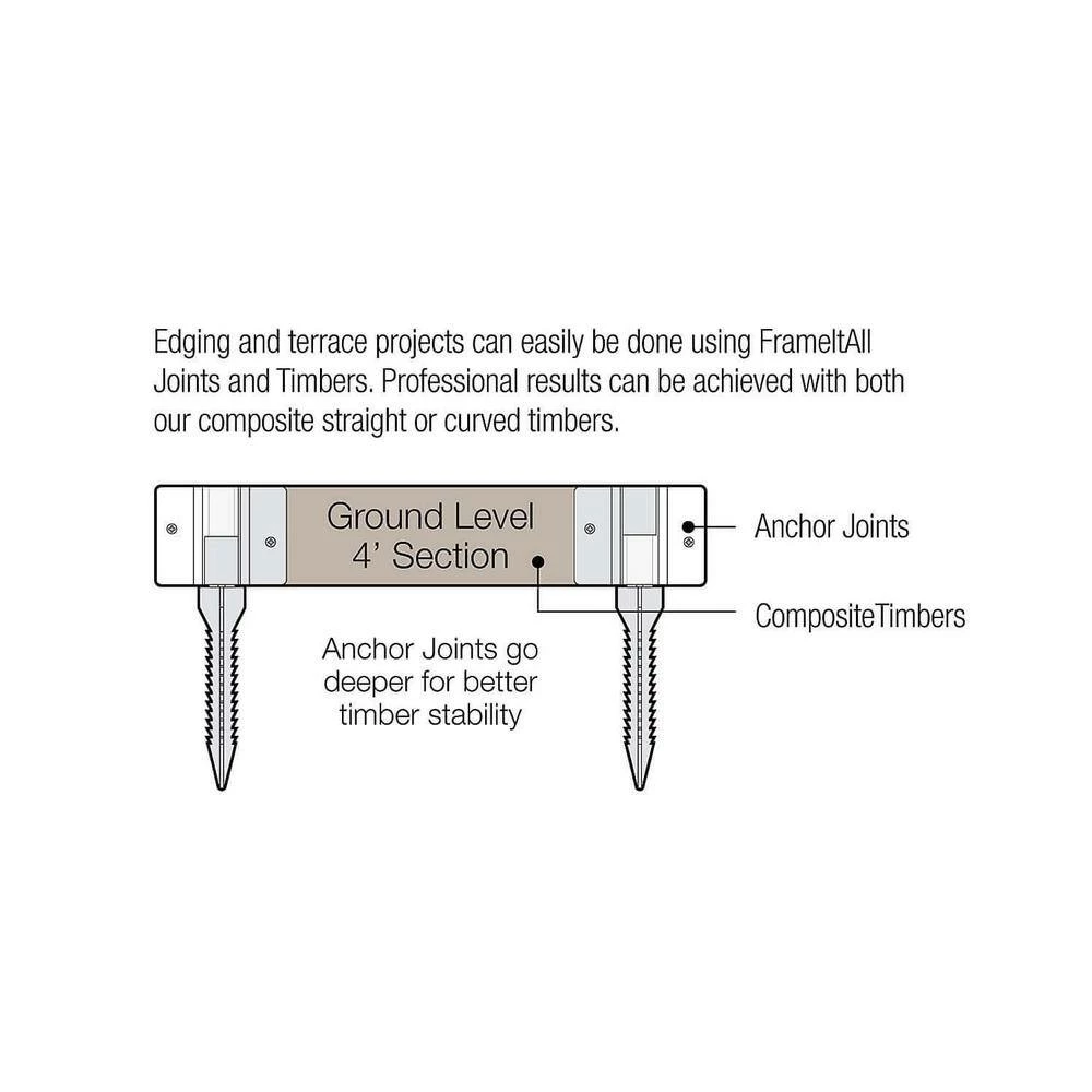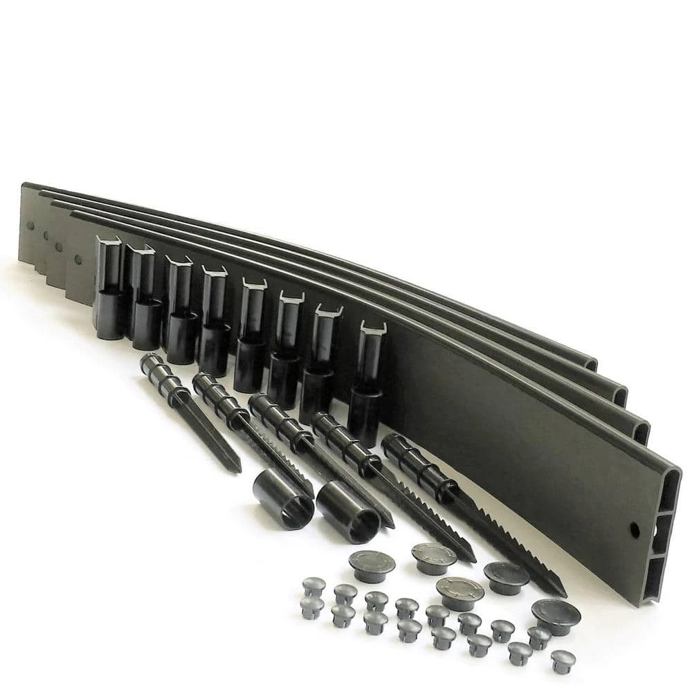 Frame It All playground borders were created by a landscape designer to be an easy, secure and cost-effective way to contain wood and rubber safety surfacing under your child’s play area. Unlike heavy wood ties that splinter (and are labor intensive). Frame It All boards and brackets go together with ease. Our borders are made from sustainably sourced wood fibers and food-grade HDPE recycled plastic, so your children are safe from splinters and hazardous chemicals. Each kit contains four curved Weathered Wood 1 profile boards and snap-lock brackets totaling 16 lin. ft. Snap-lock brackets require no tools simply slide and snap in place. Straight kits are also available and can be used interchangeably with curved kits to create natural borders that integrate with your landscape. Helpful hint. When calculating the dimensions of your playground border, a good rule of thumb is to allow 2X the height of your swing set in front and behind the swing and 6 ft. on either side of the swing set. For example, if your swing set is 7 ft. H, you would want 14 ft. of safety surface in front of and behind the swing, for a total depth of 28 ft.