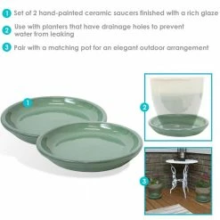 Sunnydaze Decor 9.75 in. Seafoam Ceramic Planter Saucer (Set of 2)