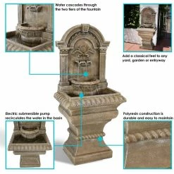 Sunnydaze Decor 45 in. 2-Tier Earth Arcade Solar with Battery Backup Tiered Fountain with LED Light