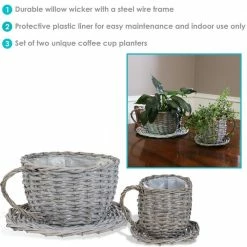 Sunnydaze Decor Gray Sunnydaze Square Polyrattan Indoor Planters – 1 Large/1 Small Planter