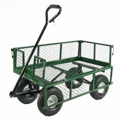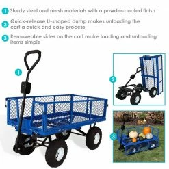 Sunnydaze Decor Blue Steel Rolling Garden Cart with Steering Handle, Swivel Seat and Basket