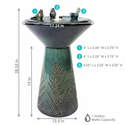 Sunnydaze Decor 28.25 in. Ceramic Outdoor Gathering Birds Cascade Fountain with LED Lights