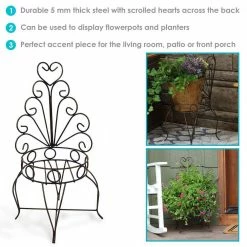 Sunnydaze Decor Sunnydaze 25.25 in. H Sweethearts Chair Indoor/Outdoor Steel Plant Stand