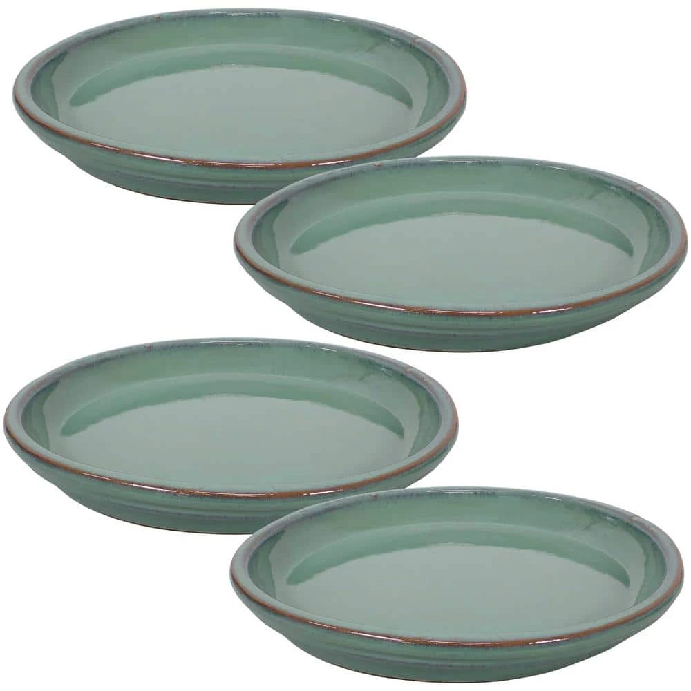 Use this set of 4 saucers with favorite planters to protect floors and other surfaces inside or outside the home. The round, hand-painted saucer trays are a great tool to use with favorite planters to be able to use them inside the house or just on the deck to prevent any water damage. It features vibrant coloring and has a raised edge to collect excess water and soil spillage.