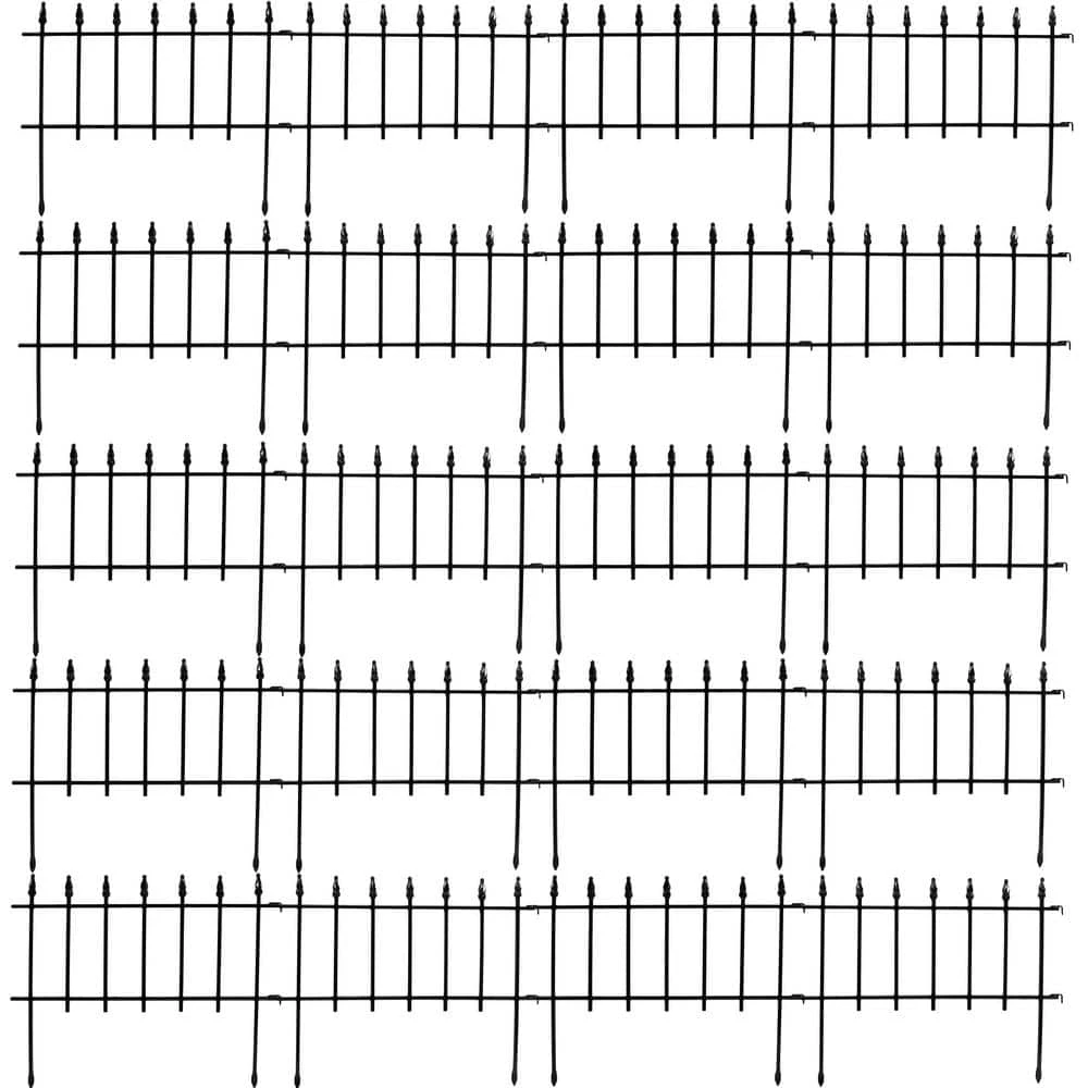 - Dimensions: 22 in. W x 18 in. tall per panel, 36 ft. overall length, 11.5 in. in-ground height, 6.5 in. stake legs with 18 in. between stakes, each fence panel weighs about 1.5 lbs., so they are a great accent for landscaping in lawn, yard, patio or backyard