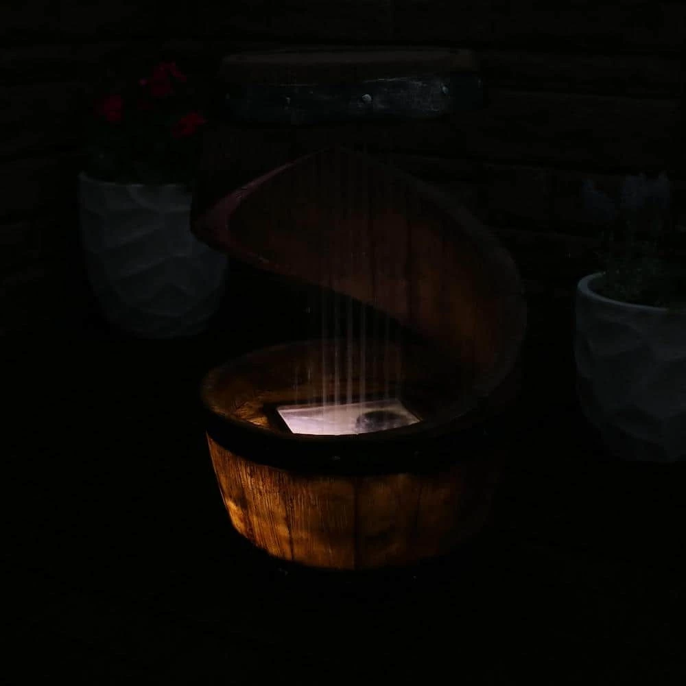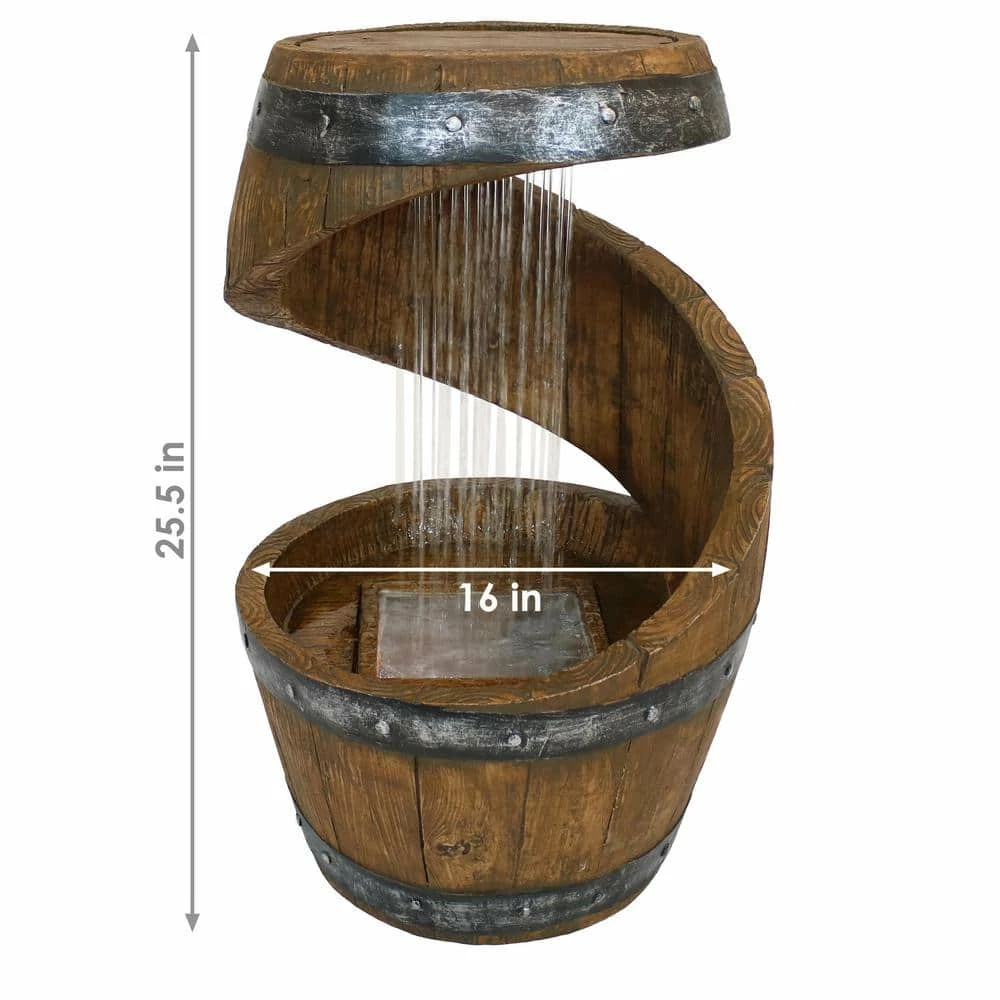 Add vintage style to any deck, patio or garden with this unique spiraling barrel water fountain by Sunnydaze Decor. The fountain features a durable resin construction that makes it lightweight yet durable. Find immediate relaxation to the sounds of the water raining down where it recirculates through the submersible electric pump. No plumbing is required, just plug it in to a standard outdoor electrical outlet when ready to operate.