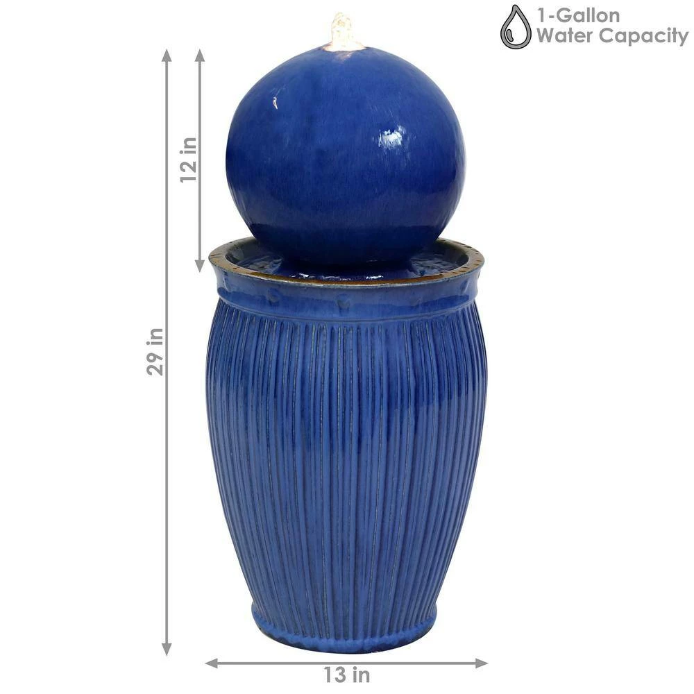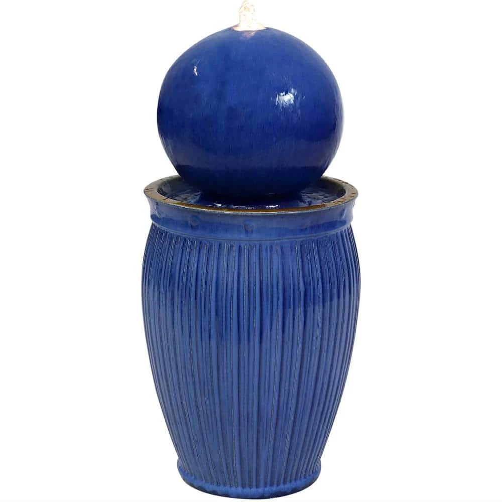- Relaxing beautiful fountain: water feature is constructed of beautiful ceramic with a blue, smooth glazed appearance, orb features an led light at the top that provides gentle illumination, cool shade is soothing and makes this piece a tranquil addition to any outdoor living space