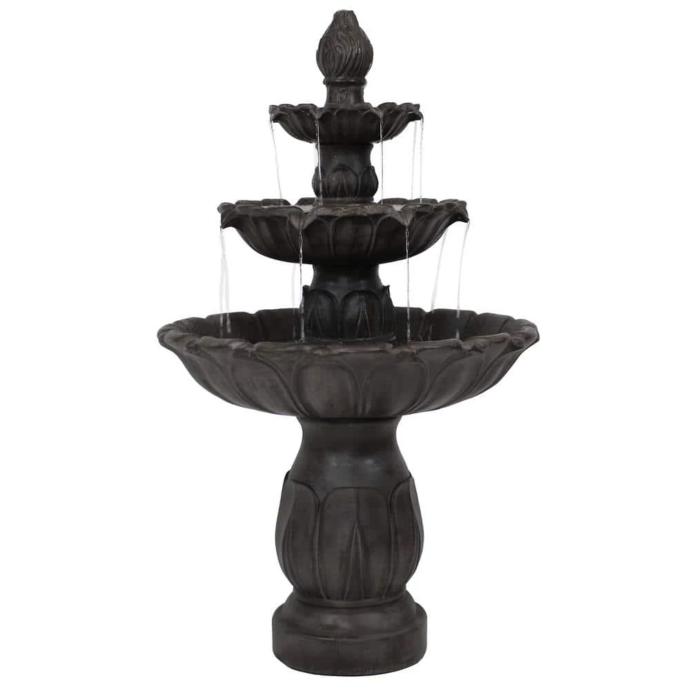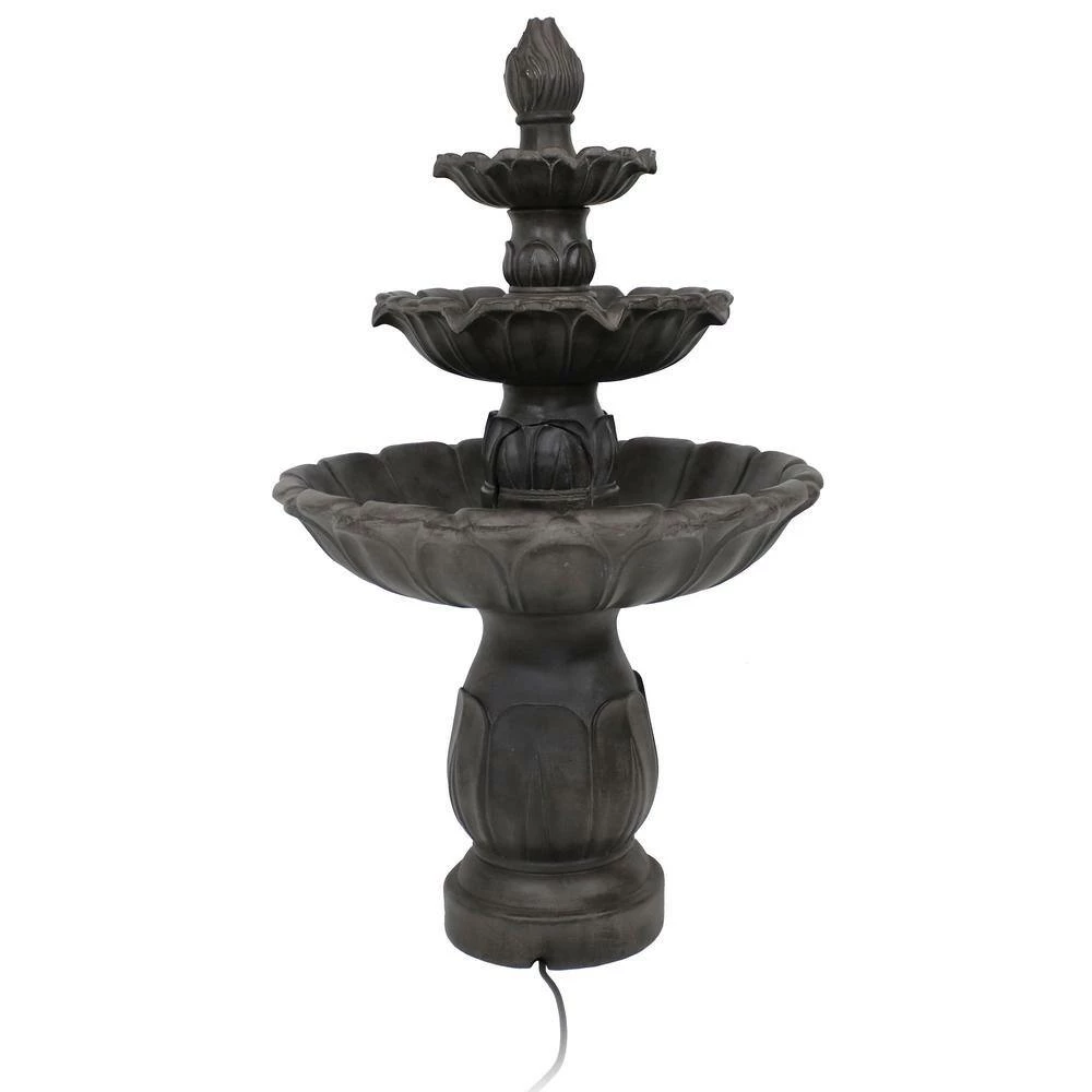Add charm and elegance to the garden, patio, or yard with this outdoor fountain. It features a durable lightweight polystone and fiberglass construction with a 3 tier design and stylized tulip top. Being a lighter weight than concrete or cast stone it makes it easier to move, clean, store and care for, yet still sturdy enough to place anywhere. Color can vary slightly and lighting can be different indoors and out as well as differences in computer monitors. So slight color variation is not a cause for return.