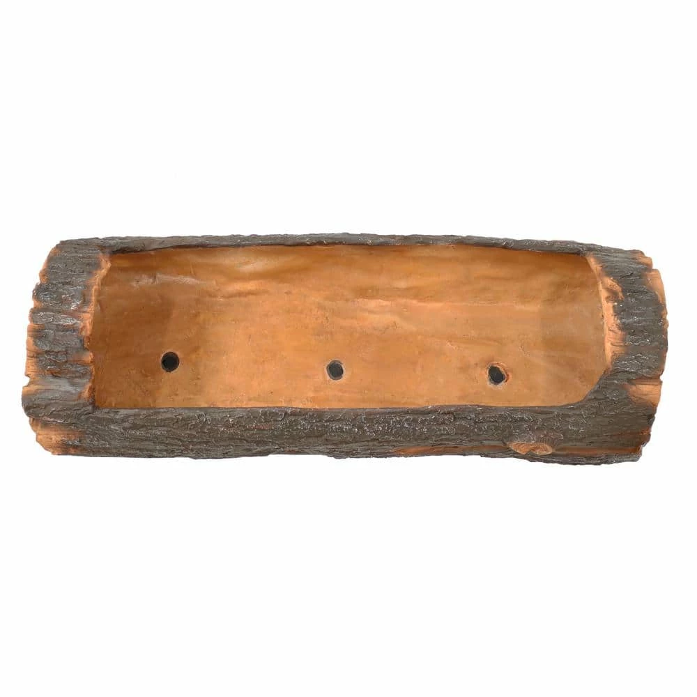 Give your outdoor landscape rustic woodland charm with the outdoor rustic log planter. This rugged outdoor gardening container is constructed of polyresin that beautifully replicates the texture and color of a fallen log, right down to the bark. It is lightweight and can easily be placed in your preferred exterior location, yet is designed to withstand the elements. This versatile planter can be used to display and grown living plants or used to display faux foliage. It makes a unique alternative to the traditional outdoor flower pots to add a natural aesthetic to your outdoor spaces.