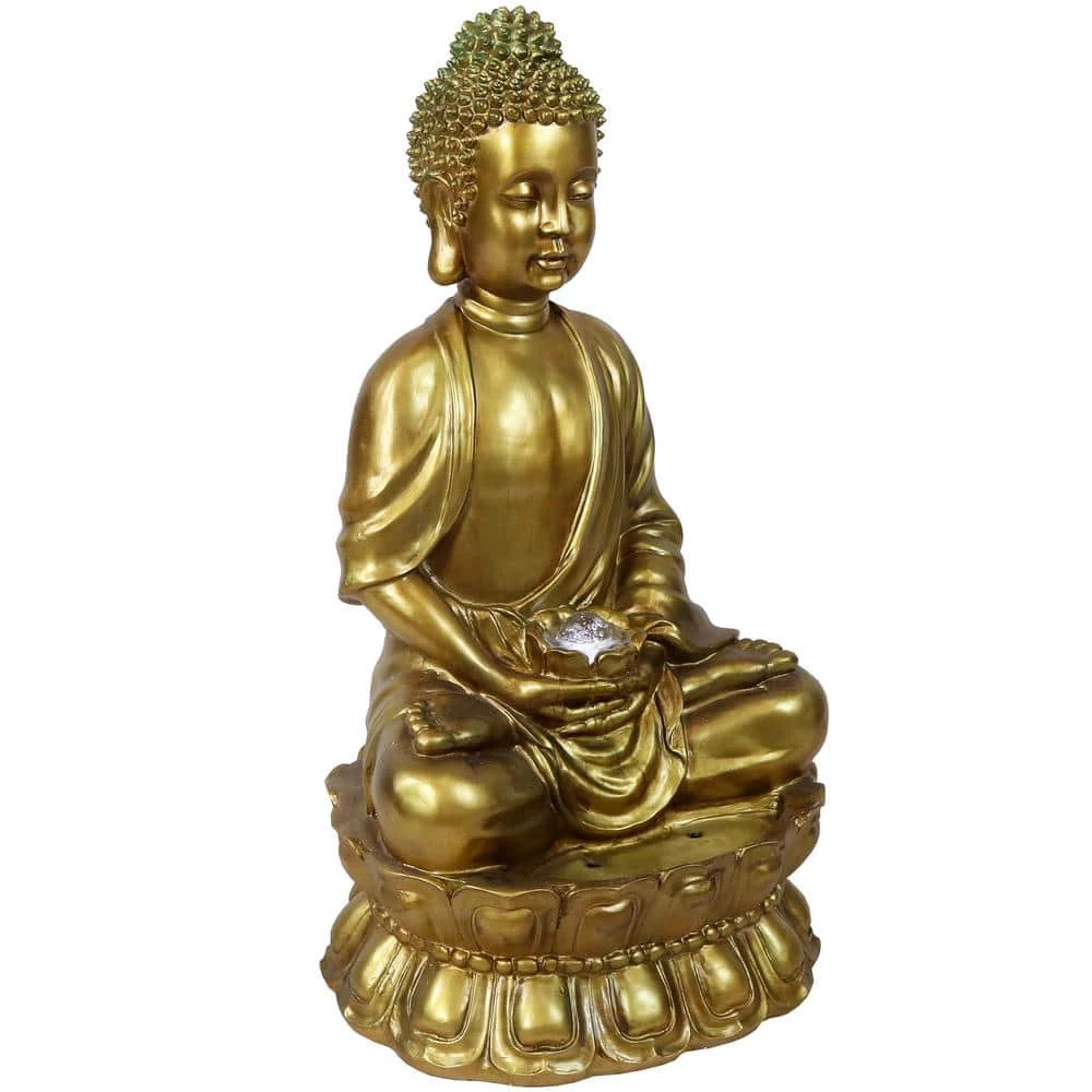 Add a unique element of serenity and ambiance to your patio, garden, or yard with this classic outdoor Buddha Fountain. The craftsmanship that this fountain radiates is stunning yet the electric pump and durable fiberglass material make this piece both beautiful and functional. Wherever you place this Buddha Fountain, you and guests are sure to enjoy it.