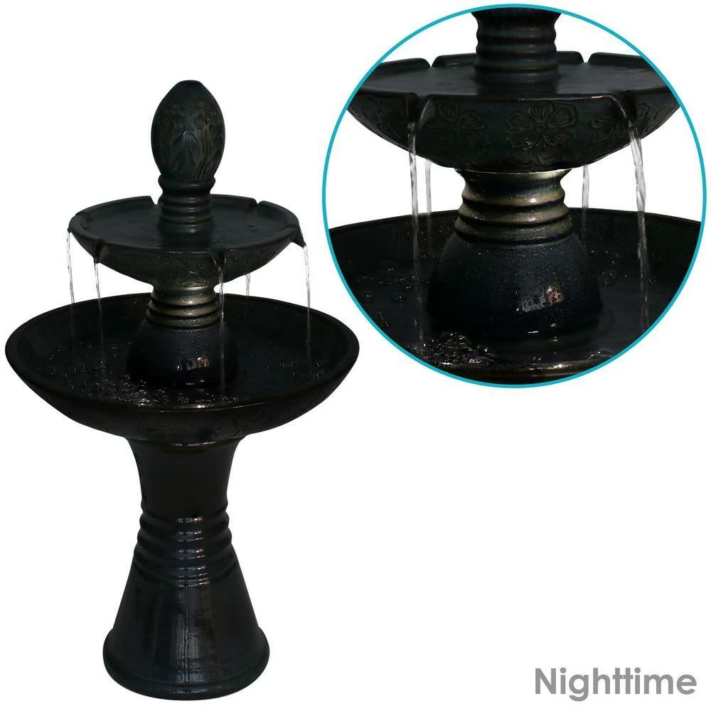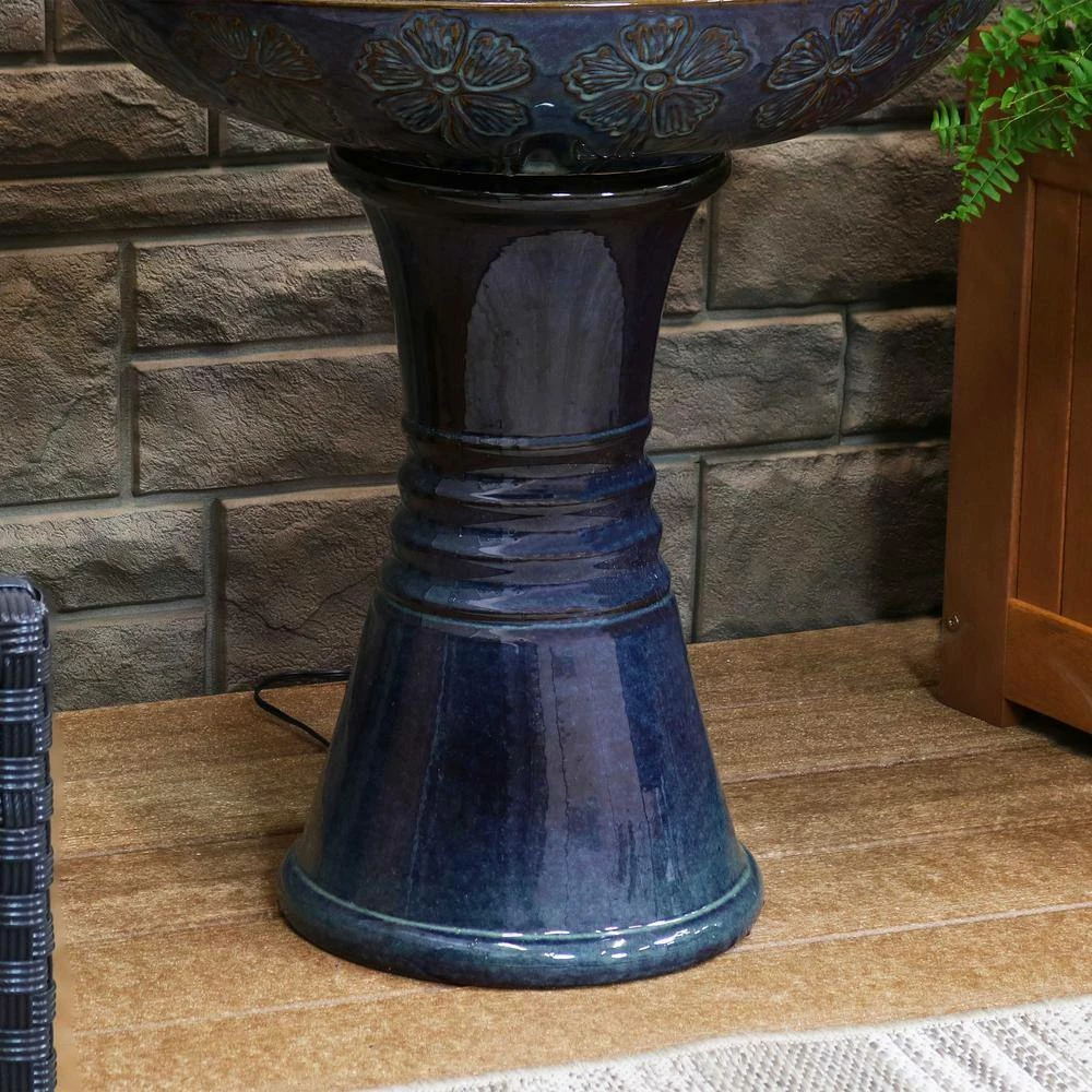 Give any patio or lawn an instant refresh with the Double Tier Outdoor Ceramic Water Fountain from Sunnydaze Decor. Durably constructed of smooth ceramic, this outdoor water feature is sure to enhance any landscape. Everything needed to assemble this decorative accent is in the box, including 1 outdoor 2-tier fountain and 1 electric submersible pump. Since the included pump continuously recirculates water through the fountain, no complicated plumbing or installation is necessary. Spend more time relaxing and unwinding the soothing sounds and sights of flowing water from this fountain.