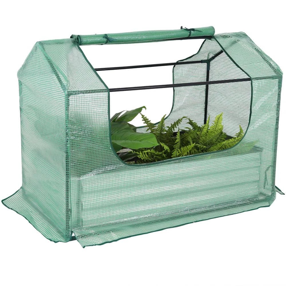 This raised garden bed greenhouse is perfect for planting a variety of flowers and vegetables. Featuring a PE mini greenhouse with a sturdy steel tube frame and PE cover and a durable galvanized steel raised garden bed, this kit will provide the optimal conditions for the plants to grow and the garden box places them at the perfect height. The greenhouse cover fits over the planter bed and provides protection from frost, heat and too much moisture. Place this raised bed with cover on the front porch, patio or in the backyard.