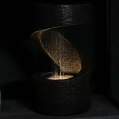 Enhance the feel and look of any patio, yard, or garden by adorning it with this beautiful outdoor electric water fountain. Standing over 4 ft. tall this feature is sure to impress all of your guests, friends and family. The water feature comes complete with an electric submersible pump and needs no additional plumbing. The spin and lock system locks each piece in place creating a sturdy fountain with wonderful waterfall sounds. The largest bowl is 27 in. Dia, next bowl is 18 in. and upper bowl is 12 in. Dia, lower pedestal measures 12 in. Dia at bottom and is 13 in. H.