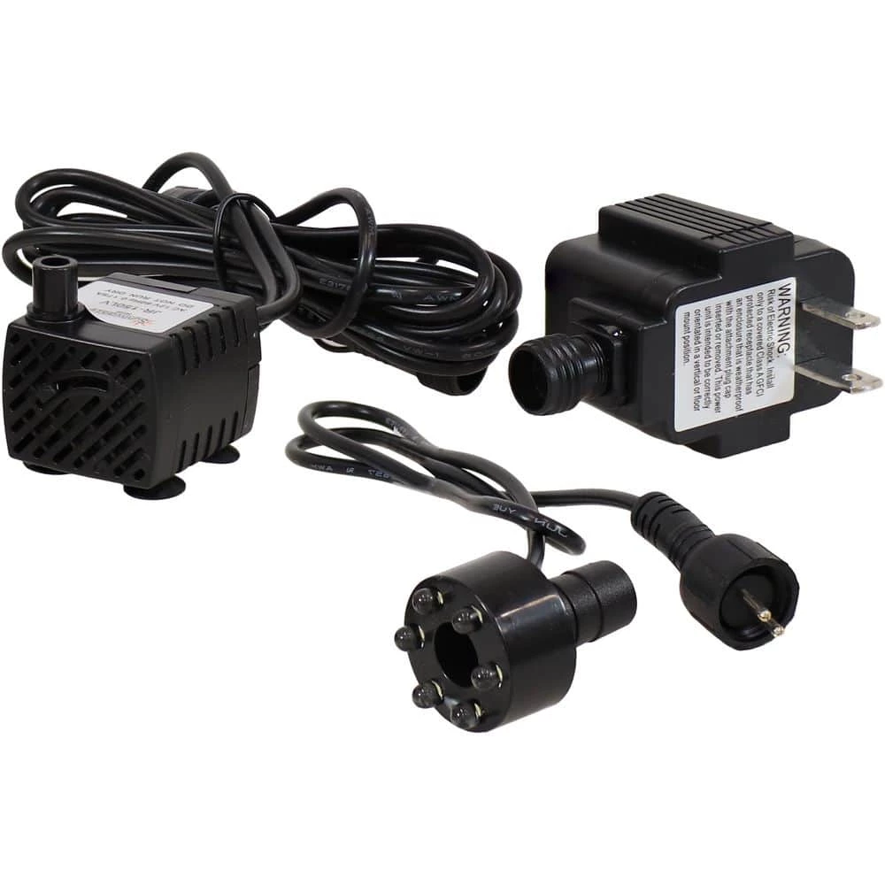 - Package includes submersible electric pond pump with a 6-bulb LED light ring, 6 ft. electrical cord and a 32 in. cable to connect the pump to the 6-bulb LED light ring
