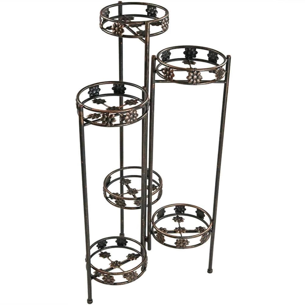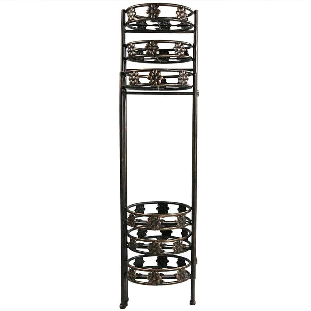 Display plants in style on the deck, patio, or in the house with this lovely 6-tier plant stand. Each plant stand features a sturdy metal design with a stylish bronze paint finish. Plus, this piece is foldable so storing it when not in use is a breeze.