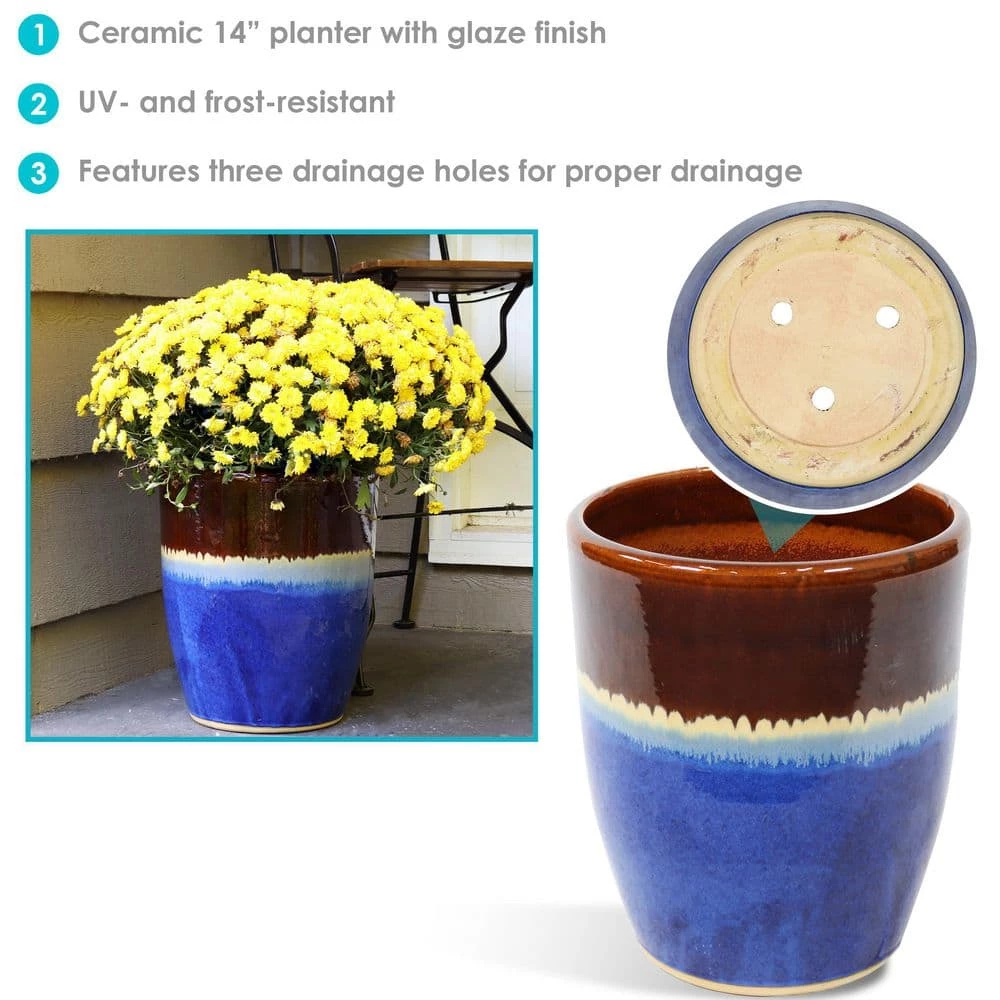 Sunnydaze Decor Captivating Vista 14 in. Beachcomber Ceramic Indoor/Outdoor Planter -Sunnydaze Decor Sales blue sunnydaze decor plant pots ap 000 66 1000