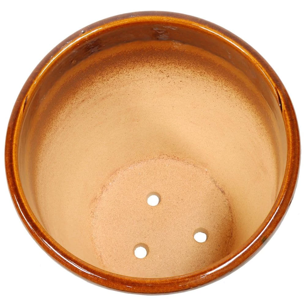 Brighten any indoor or outdoor space with some natural beauty and life. This ceramic flowerpot can be used as a decoration on the porch, patio, yard, or living room. Fill the Captivating Vista ceramic planter with vibrant greenery, fragrant flowers, and other beautiful plants to breathe life into any indoor or outdoor area. Set the planter on a stand (not included) in the living room or kitchen, or place it on the porch or front step. This beautiful large indoor planter is made from durable ceramic clay with a mineral glaze finish for added resistance to the elements and long-lasting beauty. This large round flowerpot features 3 holes in the bottom to allow proper drainage for flowers, herbs, greenery, and plants. Be sure to always use a saucer (saucer not included) beneath the planter when placing it indoors to avoid spilling excess water and soil on the floor.