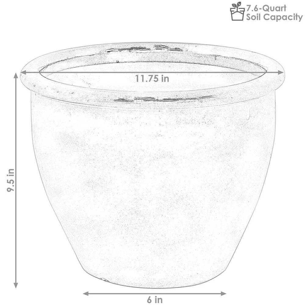 - Overall dimensions: 11.75 in. outer top diameter (10 in. I.D.), 6 in. outer base diameter (5.5 in. inner base diameter) x 9.5 in. tall (9 in. tall inner), weighs 11 lbs. per planter, one 1 in. drainage hole, soil capacity: 7.6 qt./1.9 Gal.