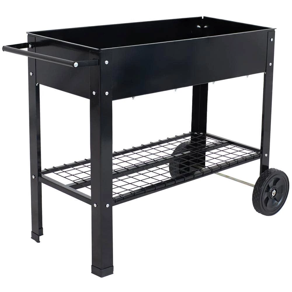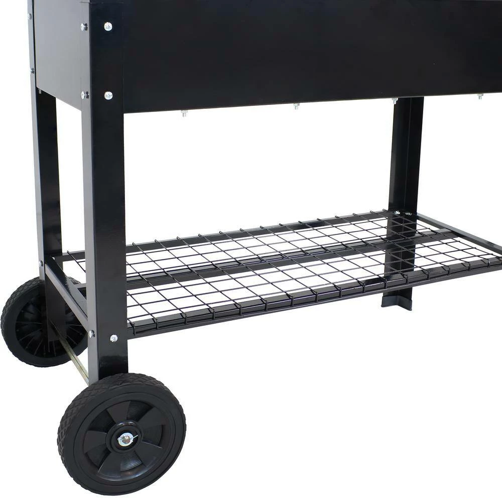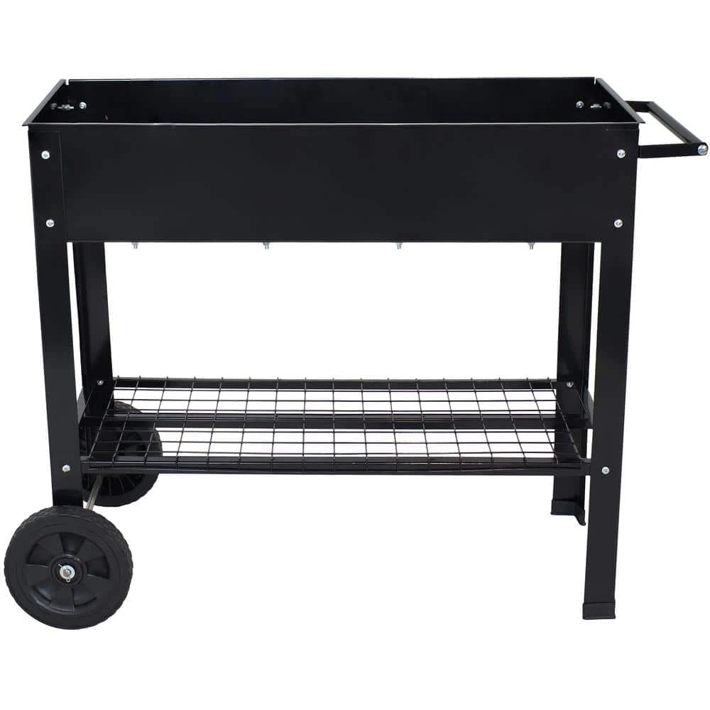 Grow your favorite vegetables, plants, and flowers on your deck, patio, or yard with this raised garden bed cart with drainage holes. Bring your plants inside when it’s cold or move them into shade or sun as needed by pushing the cart with the convenient handlebar. The 2 wheels at the bottom of this cart make moving it a breeze. Plus, the built-in lower shelf is a convenient place to store gardening and plant supplies or potted plants. This garden cart is made from durable steel with a hot-dip galvanized black finish for resistance to rust and most weather conditions.