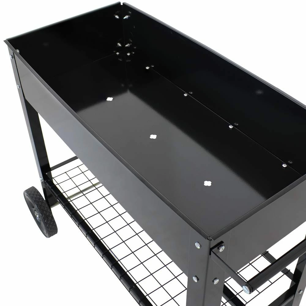 - Duable steel construction: elevated garden cart is made from durable 1.5 mm-thick steel with a black hot-dip galvanized finish; planter area has 1 in. Dia drainage holes and a 110 lbs. weight capacity; planter can hold approximately 2.25 cu. ft. of soil; bottom shelf has 65 lbs. weight capacity; overall weight capacity of 175 lbs.