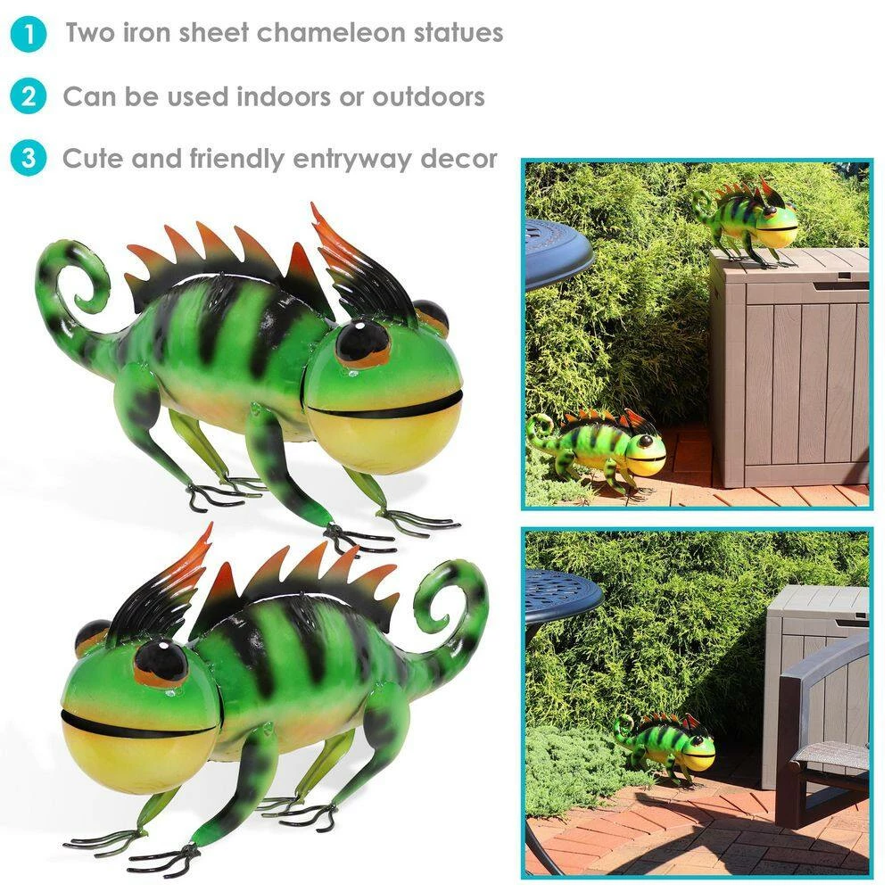 - Friendly garden accents: these colorful metal yard art chameleons measure 15 in. W x 4 in. D x 8.5 in. H and weigh 0.8 lbs. each
