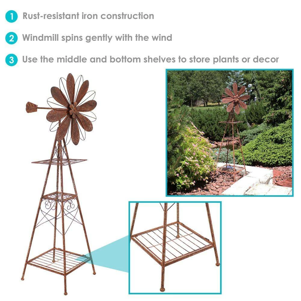 - Functional and fun design: the bottom shelf on this unique windmill decor provides a place for displaying plants and other decorative accents in any outdoor space, the structure creates a friendly environment wherever it is placed, and the user can turn the wheel smoothly and quietly with the wind
