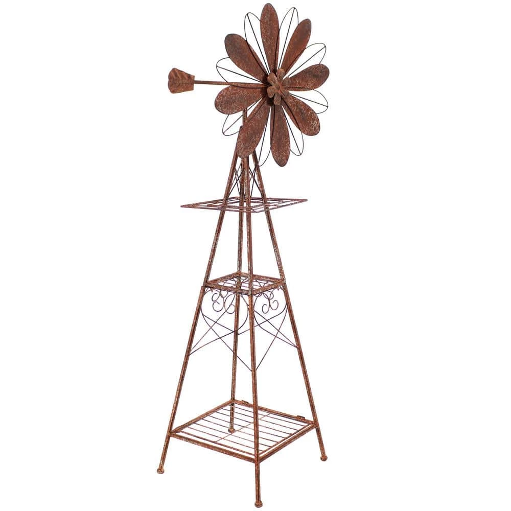 - Strong construction: the windmill statue is constructed from durable, rust-resistant iron and has a brown/copper finishing to maintain a natural, rural style, the base of the structure is very broad, ensuring stability for putting materials on the bottom shelf. the propeller of the windmill can spin with a handle attached to the body