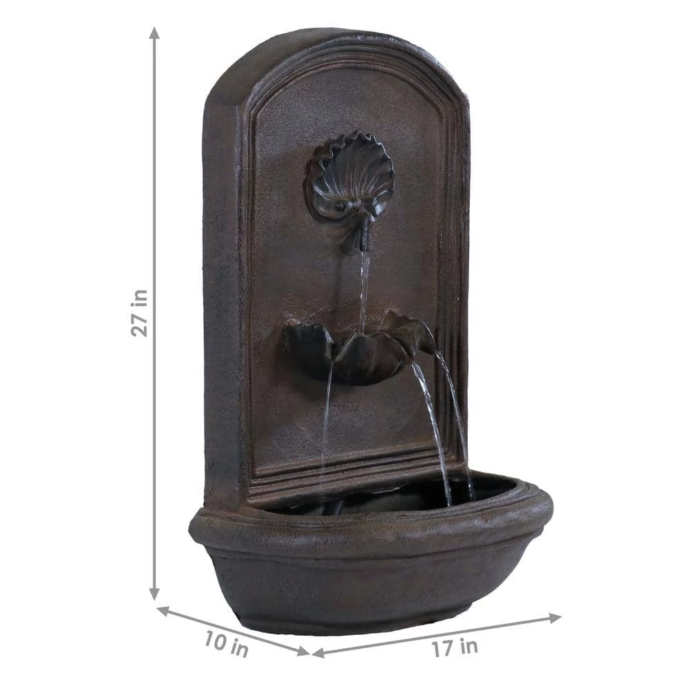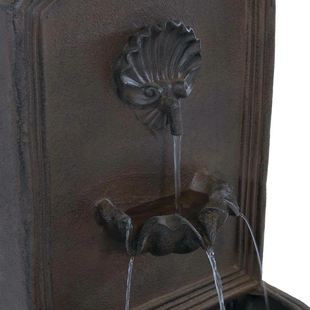 Add sea-themed charm to any patio or garden walls with this solar powered outdoor wall water fountain. Water flows from the faucet into the level below where it splits into 3 streams and flows into the basin below. The pump is plugged into a solar panel that runs the fountain via the sun. The fountain features a polystone and fiberglass construction, giving it a stone-like look. Polystone is made from polyurethane resin mixed with a powdered stone additive which provides the lightness and durability of resin mixed with the high-end look of stone. No more unsightly extension cords running across the yard and hogging the outdoor plugins.