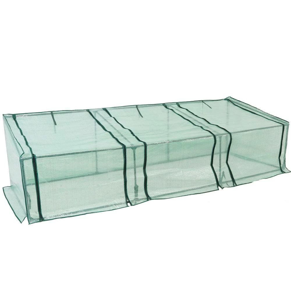 Protect your plants from harsh weather and create the perfect growing environment at home with this easy-to-use mini greenhouse. with a frame made from strong steel wire and a durable polyethylene covering coated with a UV ray protective finish, this portable cloche greenhouse with slanted top is the perfect option for growing vegetables, fruits, plants and flowers. The cover protects plants from UV rays and inclement weather like frost, excessive heat and moisture. The cover is transparent to ensure plants receive the perfect amount of Sunlight. Zippered doors allow you to control airflow in and out of the greenhouse and give easy access to your plants.