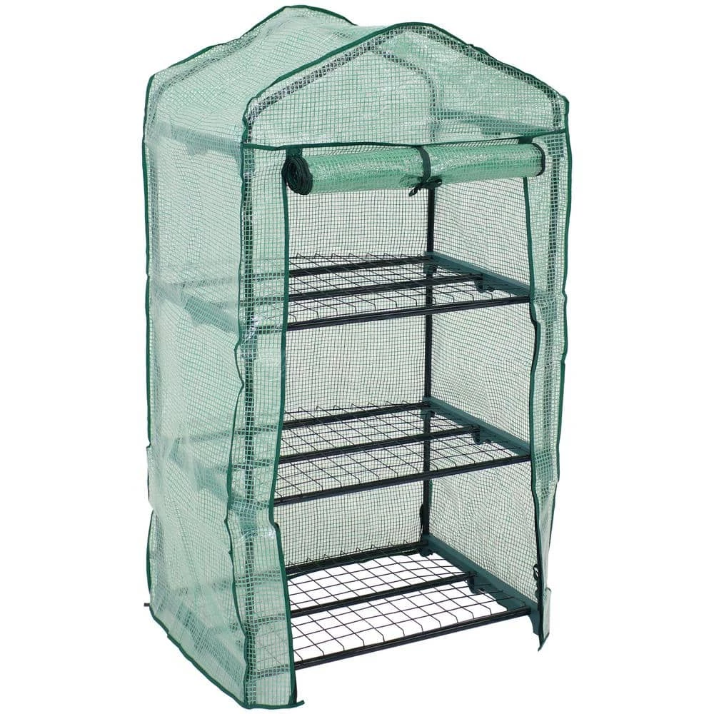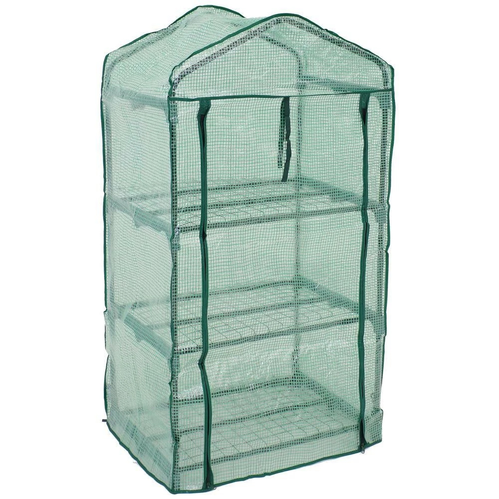 Have a successful growing season with help from this small greenhouse for plants. with 3 shelves for growing plants and storing supplies, this portable mini greenhouse is perfect for creating the ideal climate for growing all your favorite vegetables, herbs, fruits, and flowers. This greenhouse is durably constructed from an iron tube frame with steel wire shelves and a polyethylene covering coated with a UV ray protective finish. The durable cover protects plants from inclement weather, like frost and excessive heat or moisture. The covering is transparent so light can filter through to ensure plants receive the perfect amount of sunlight. A roll-up door makes accessing your plants easy and allows you to control air flow in and out of the greenhouse. Simply tie the door up to keep it open or untie and zip the sides down to keep it closed.