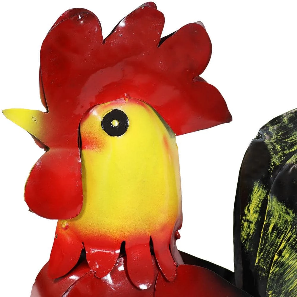 - Rustic metal art: this rooster statue is made of durable steel with a vibrant paint finish, if used outdoors, this statue will develop a natural patina over time, because this statue is handcrafted, the design and colors may vary slightly