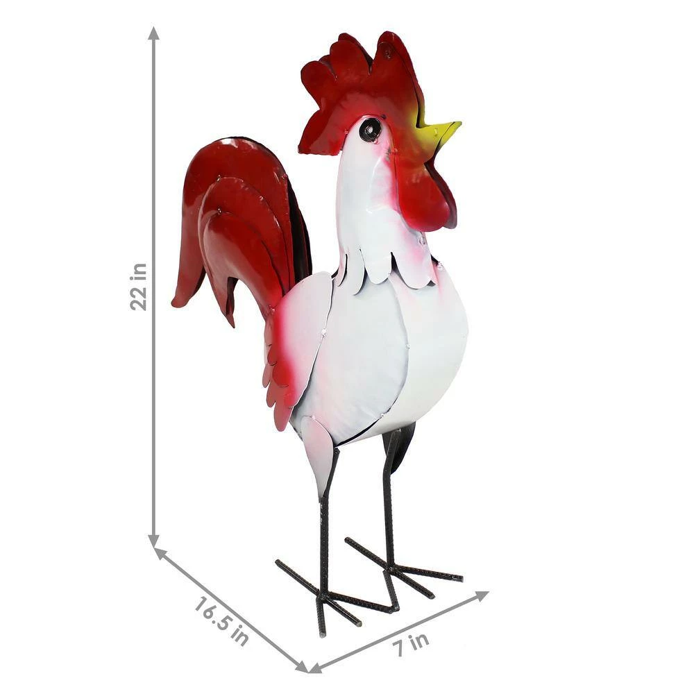 - Farmhouse garden accent: this small rustic metal art rooster measures 16.5 in. W x 7 in. D x 22 in. H and weighs 3 lbs.