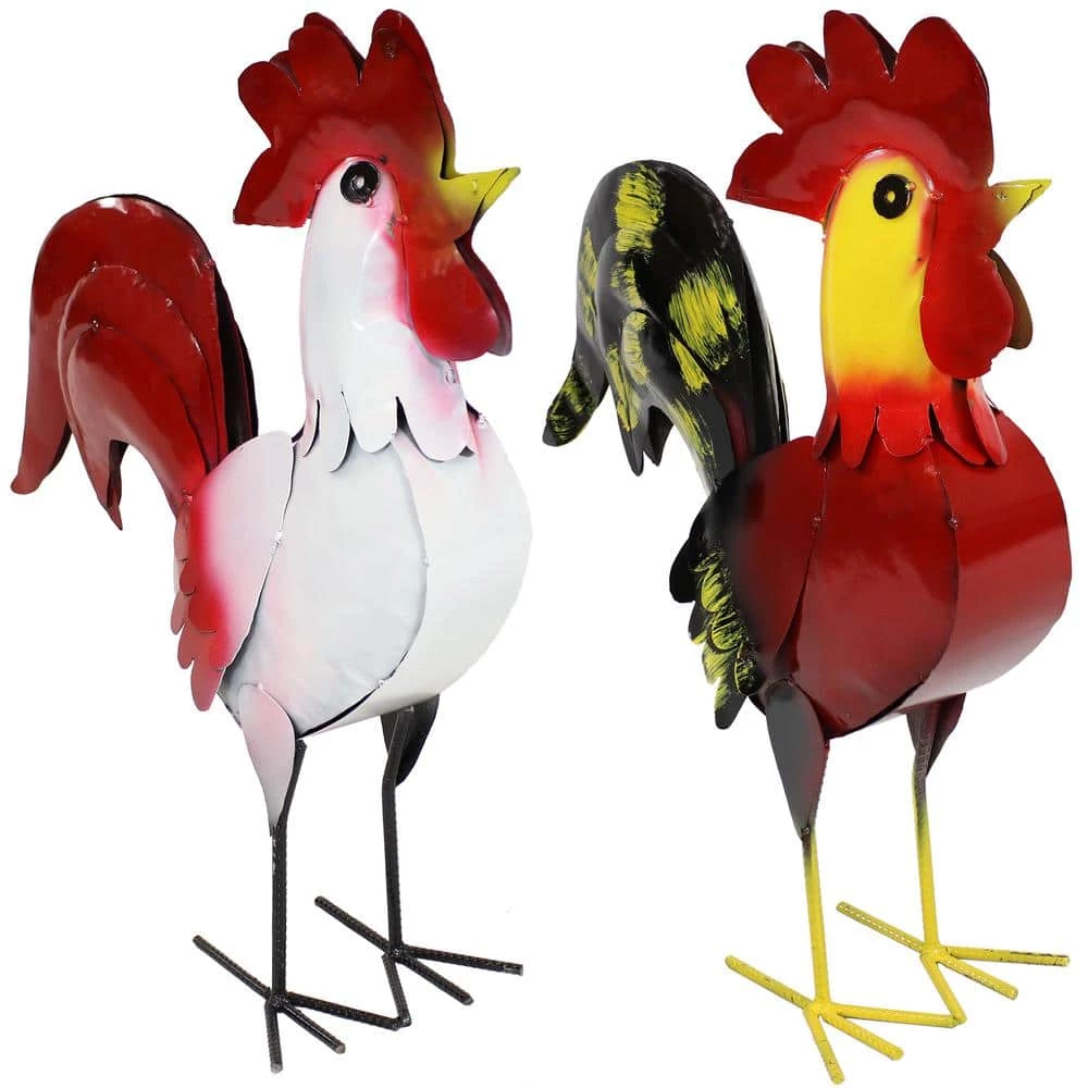 - For indoor or outdoor use: add farmhouse charm to a variety of locations with this set of 2 rustic metal garden art rooster statues