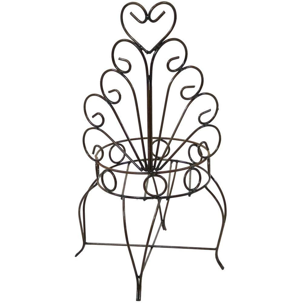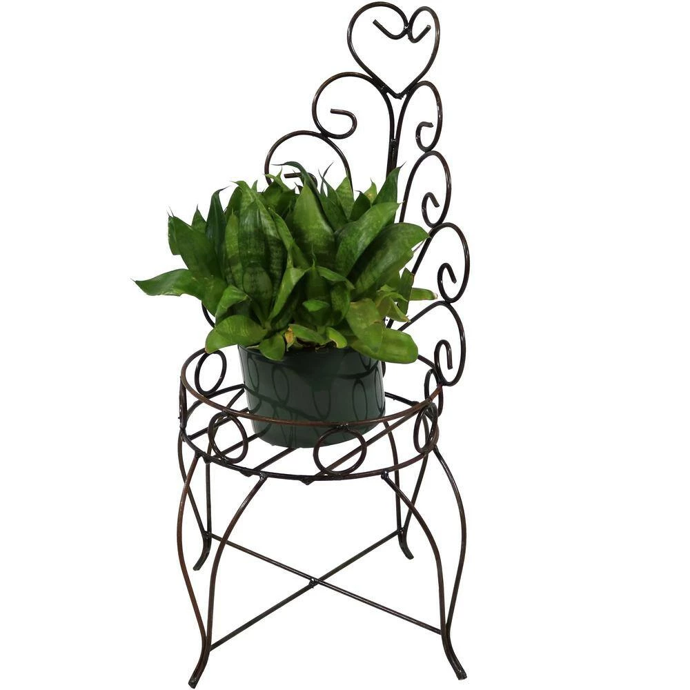 - Metal design: this chair plant stand set is made from durable 5 mm thick steel with beautiful, scrolled hearts across the back, if used outdoors, this planter will develop a natural patina over time, because this product is handcrafted, the design may vary slightly