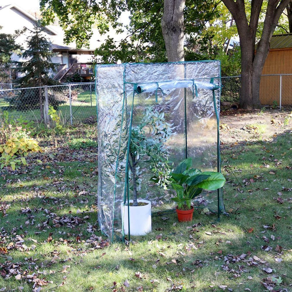 - Light-filtering, transparent cover protects plants from harmful UV rays and weather conditions this plant house tent includes 4 metal stakes and 4 ropes to secure it to the ground