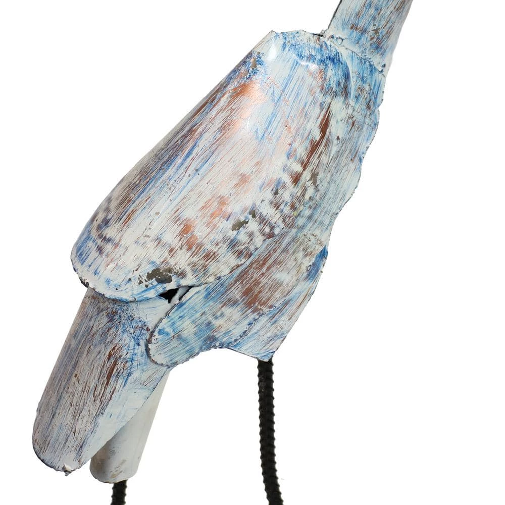 Give your outdoor space a coastal vibe with this charming metal bird statue. This handcrafted sculpture details a lovely white bird, and yellow beak holding a fish. The steel construction with hand-painted finish creates a durable, elegant accent for the yard, patio, or garden. Due to the handmade nature of the metal sculpture, when used outdoors, this crane statue will develop a natural patina over time and will show some weathering.